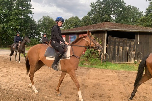 „Antonia ist im August für vier Wochen in Irland, bei Trainer Aidan O’Brien“ klärt von der Recke auf, warum seine Tochter nicht im Sattel sitzt. Gleichzeitig stellt der Trainer Marie Behr vor, die in der kommenden Woche 17 Jahre alt wird, und am Samstag ihr Debüt im Rennen gibt.