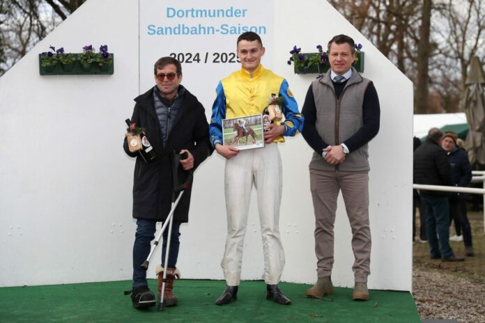 Es war nämlich gleichzeitig MacRedmonds 30. Sieg im Rennsattel. 27 Siege kamen dabei in Deutschland zustande und drei weitere im Ausland. Der erste Sieg gelang MacRedmond im Übrigen im Juli des vergangenen Jahres, als er Cheval Blanc in Magdeburg zum Sieg führte.