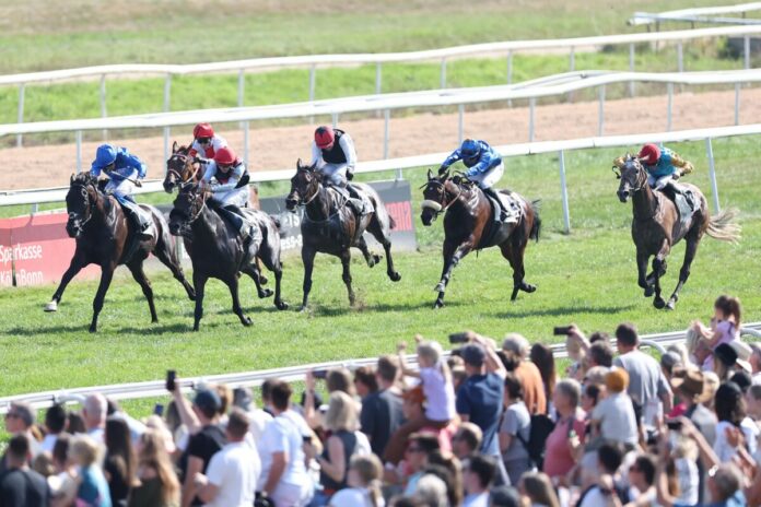 Der Ittlinger Lordano, der Dritte im Europa-Preis, bleibt bei 97,5. Er kam zweidreiviertel Längen hinter Straight ins Ziel.