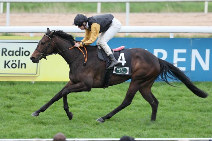 Peter Schiergen trainiert die Tochter der Artistica, welche als 3,2:1-Favoritin im Ausgleich III erfolgreich war in Köln. Im Sattel der Siegerin saß dabei Sibylle Vogt. Sie hielt sich mit ihrer Partnerin zunächst im hinteren Teil des Feldes auf, doch wurden beide in der Bahnmitte immer zwingender und kamen letztlich noch zu einem lockeren Sieg. „Wir machen mit ihr zunächst auf der kleinen Route weiter. Doch wollen wir auch versuchen mit ihr Black Type zu erreichen, deshalb blieb sie auch im Rennstall“, so der siegreiche Trainer nach dem Rennen.