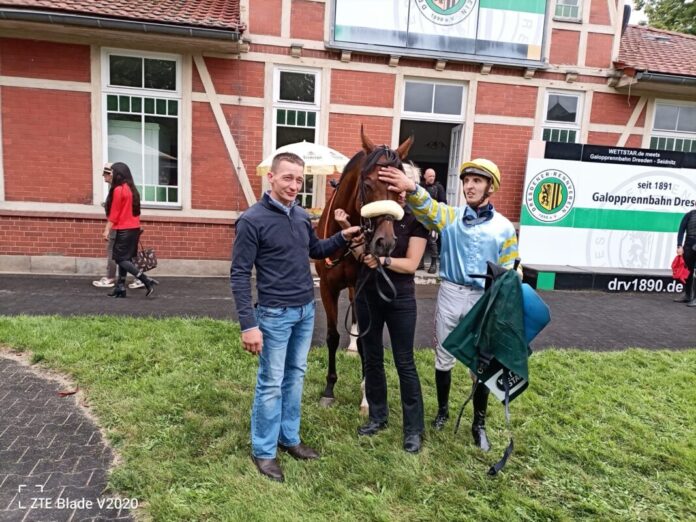 Dann aber führte Adam Florian die Richter-Stute des Stalles Oberlausitz an die Innenseite, wo sie noch fein anpackte und letztlich noch zu einem leichten Sieg kam. „Ich bin zufrieden, eigentlich braucht sie etwas weitere Wege“, so Trainer Stefan Richter nach dem Rennen.
