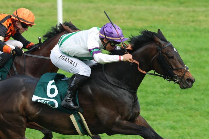 Und mit dieser Quote gab es für alle Wetter von Backes ein Bützje – ein Siegerküsschen. Passenderweise grüßte Siegjockey Encki Ganbat vom Pferd runter auch seine Schwiegermutter.
