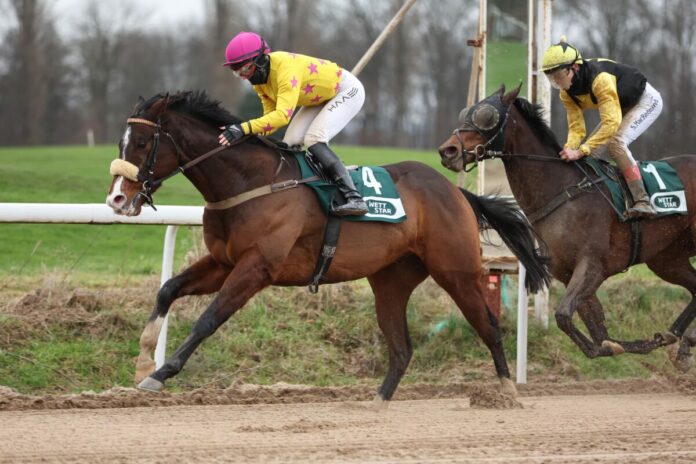 Eigentlich hatte man im letzten Rennen des Dortmunder Sonntagsrenntages mit einem Sieg für einen der beiden Top-Azubis Andrea Ricupa (Darling Jay, 2,1:1) und Senan MacRedmond (Track Record, 2.8:1) gerechnet, doch wie heißt es so schön? „Wenn zwei sich streiten, freut sich der Dritte.“