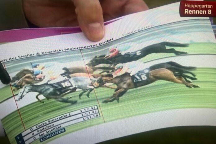 Und dann sollte es zur Kuriosität kommen. Denn man änderte nachträglich den vorläufigen Einlauf und erkannte auf ein totes Rennen zwischen der bereits erwähnten Costa Smeralda aus dem Besitz des Stalles Linova und Reiterin Lilli-Marie Engels und der von Patrick Gibson gesteuerten Pädchen. Mit ihr kam der Stall Blue Sky zum zweiten Tagessieg, denn dieser konnte bereits die Auftaktprüfung mit einem Doppelsieg feiern, als Circuskind und Ace Aussie, die beiden ersten Plätze belegten. Es war damit natürlich auch der zweite Tageserfolg für Trainer Frank Fuhrmann.