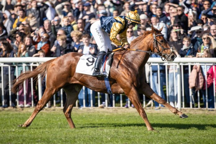 Was war das denn? So was wie im zweiten Rennen in Hoppegarten, dem als Ausgleich III-1200 Meter-Sprint gelaufenen Preis der Linara Wintergärten sieht man nur selten. Vor allem auf der Geraden Bahn.