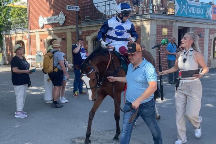 Ich danke dem Trainer und dem Team zu Hause für die tolle Arbeit und dem Besitzer für die Klasse Chance hier reiten zu können. Beste Grüße nach Köln“, so der überglückliche Siegjockey noch auf dem Rücken des Pferdes ins Mikrofon.