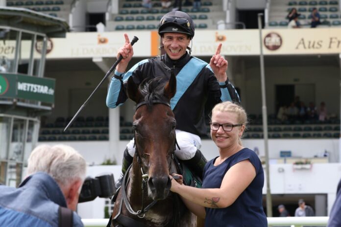 Und ihrer Quote von 3,4:1 sollte die für Dr. Andrea Schmidt betreute Lucky Lion-Tochter auf den geforderten 1600 Metern dann auch gerecht werden. Schon händevoll in die Gerade kommend, brauchte Siegreiter Mikki Cadeddu nur noch sagen „go“ und die Sache war geregelt.