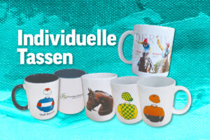 Sie möchten eine Kaffeetasse mit Ihrem Renndress, mit einem Bild Ihres Pferdes, mit einer Collage von Bildern? Der Phantasie sind keine Grenzen gesetzt!