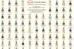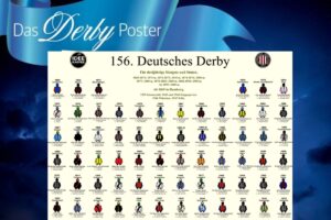 Ein spannendes IDEE 156. Deutsches Derby liegt hinter uns. Hochkönig hat gewonnen. Dieses Poster zeigt die Rennfarben aller Derbysieger seit 1869, einschließlich Hochkönig.
