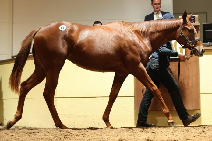 Bei der Katalog-Nummer 87 wurde ein vorerst neuer Verkaufs-Höchstpreis erreicht. Wie schon beim bisherigen Sales-Topper fungierte das Gestüt Görlsdorf als Anbieter. Der Hammer fiel nach einigen Minuten bei 67.000 Euro.