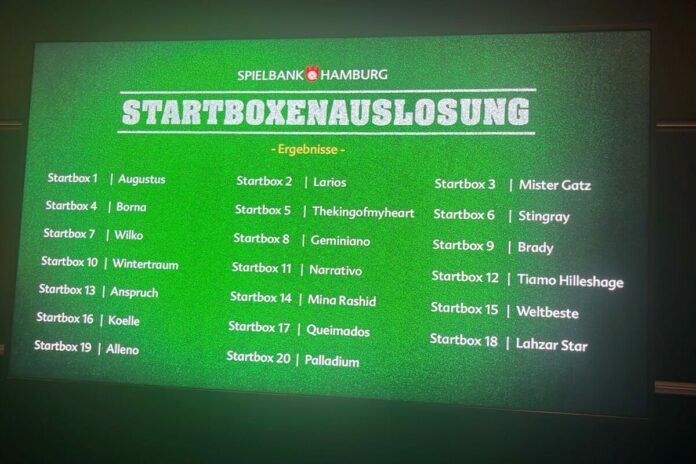Mit etwas Verspätung wurden am Dienstagabend die Startboxen für das Derby 2024 gezogen (zum RaceBets-Langzeitmarkt) (zum pferdewetten.de-Langzeitmarkt.de). Alle 20 Teilnehmer haben nun ihren Startplatz zugelost bekommen und natürlich gab es wieder einige glückliche Lose und einige unglückliche.