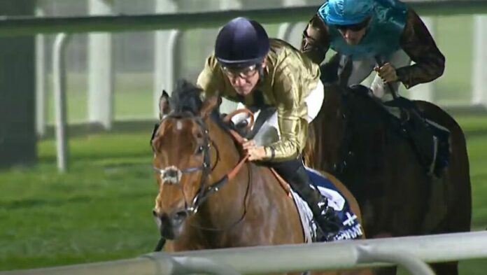 Fast wie am Schnürchen läuft es heute für Adrie de Vries in den Vereinigten Arabischen Emiraten. Auf der Rennbahn Meydan gelang ihm im siebten Rennen des Tages der dritte Volltreffer.