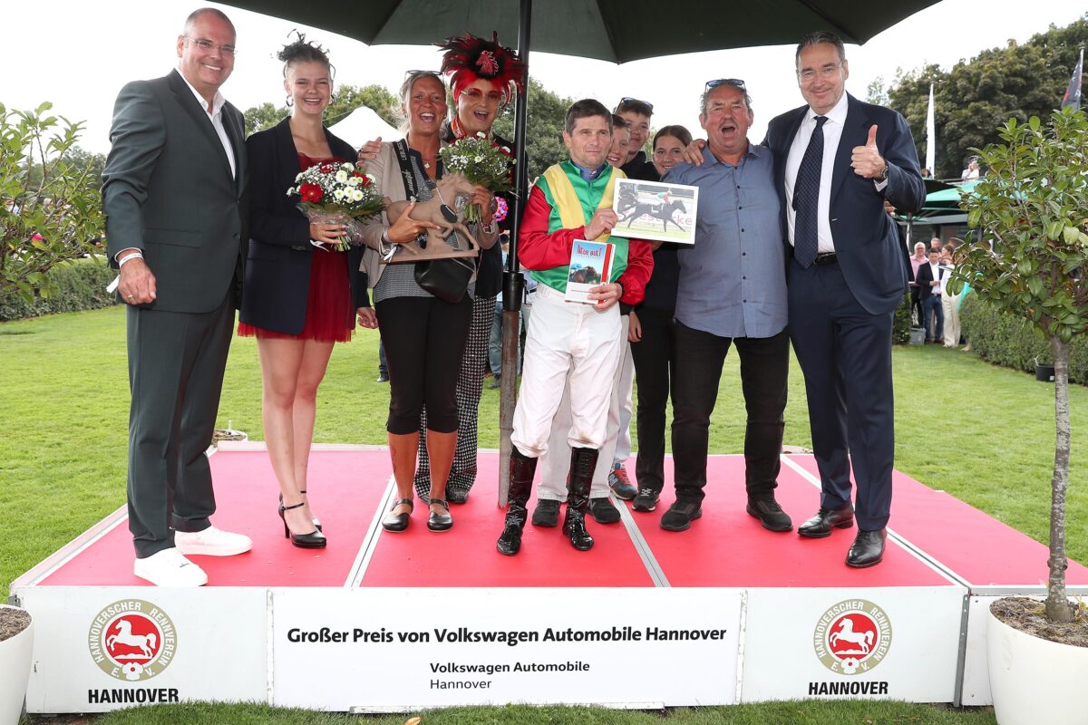 Volker Schleusner nach dem Rennen: „Wir sind überwältigt, die Stute kann es einfach! Warum sollte man der Stute was geben, sie macht es!“, spielte er auf die Disqualifikationen an und weist Vermutungen über Mittel zur Leistungssteigerung von sich.
