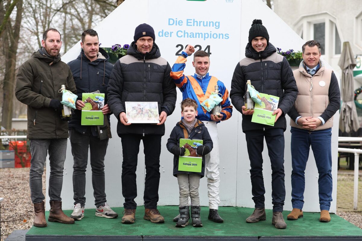 Er machte mit einem Sieg mit Lion Hunter im zweiten Rennen des Dortmunder Sonntagrenntages den Sack zu. Und das hochüberlegen mit 13 Längen Vorteil.