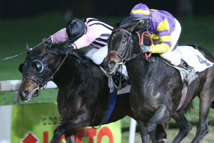 Sie waren einfach nicht zu trennen: Bearcardi und Why’s Wyoming waren am heutigen Nachmittag auch durch die Zielfotografie nicht zu trennen, und letztlich musste der Zielrichter natürlich auf ein totes Rennen entscheiden. Das passiert äußerst selten. Selten im Pferderennsport überhaupt, aber noch seltener auf der Sandbahn, wo die Abstände zwischen den einzelnen Teilnehmern oft sehr deutlich sind.