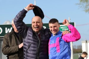 200 Meter vor dem Ziel überlief der Siebenjährige, den man unterwegs innen an dritter Stelle sah, dann den lange führenden Favoriten True and Quick und kam zu seinem zehnten Sieg. Das Badenia Rennen der Heinrich Vetter Stiftung, einen mit 13.000 Euro dotierten Ausgleich II, gewann der Maxios-Sohn nach 2024 zum zweiten Mal. Hinter dem von Henk Grewe trainierten True and Quick belegte Karoly Kerekes‘ Elmos Fire den dritten Platz. „Ich bin so happy und dankbar“, freute sich Besitzer Marc Hübner über den weiteren Erfolg des vom Gestüt Brümmerhof gezogenen Publikumslieblings. „Die Leute haben ihn wieder unfassbar angefeuert, ich bin richtig geflasht.“