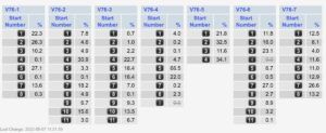 Knapp 20 Minuten vorher sind knapp 35.500 Euro im Topf, und die Einsätze verteilen sich auf die startenden Pferde wie in der nachfolgenden Grafik zu sehen.