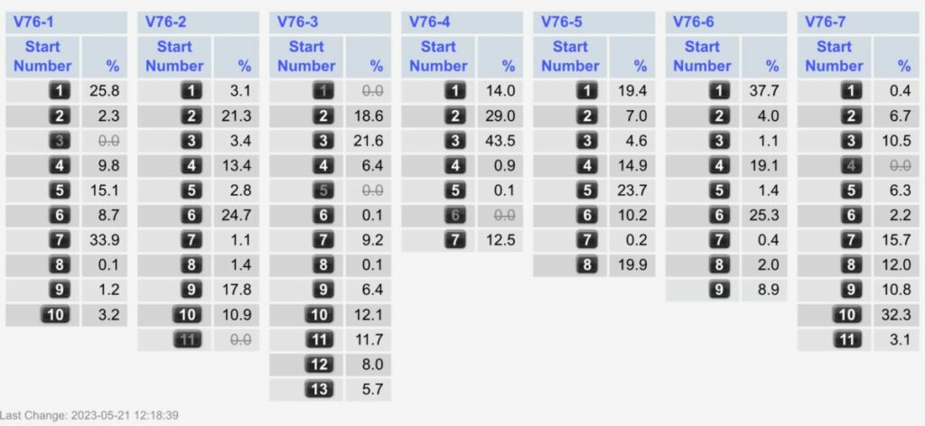 Nachfolgend die prozentuale Aufteilung der Einsätze auf die Starter in den einzelnen der sieben Rennen.